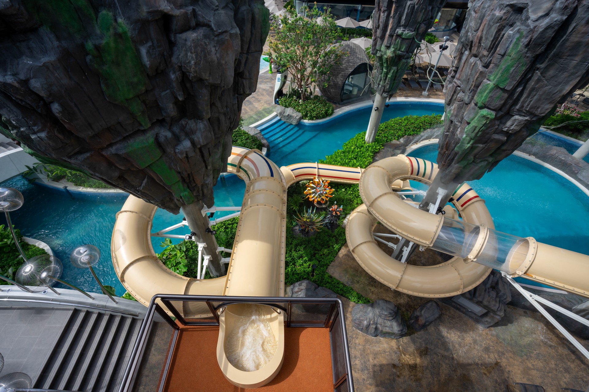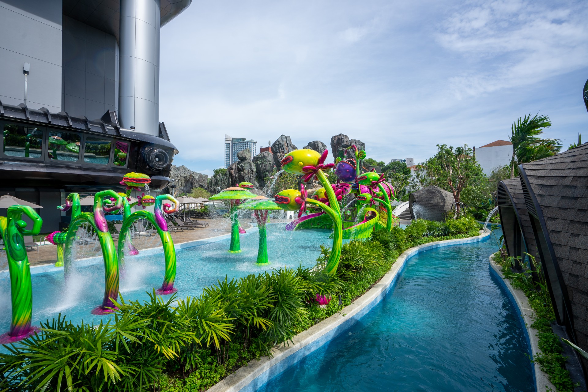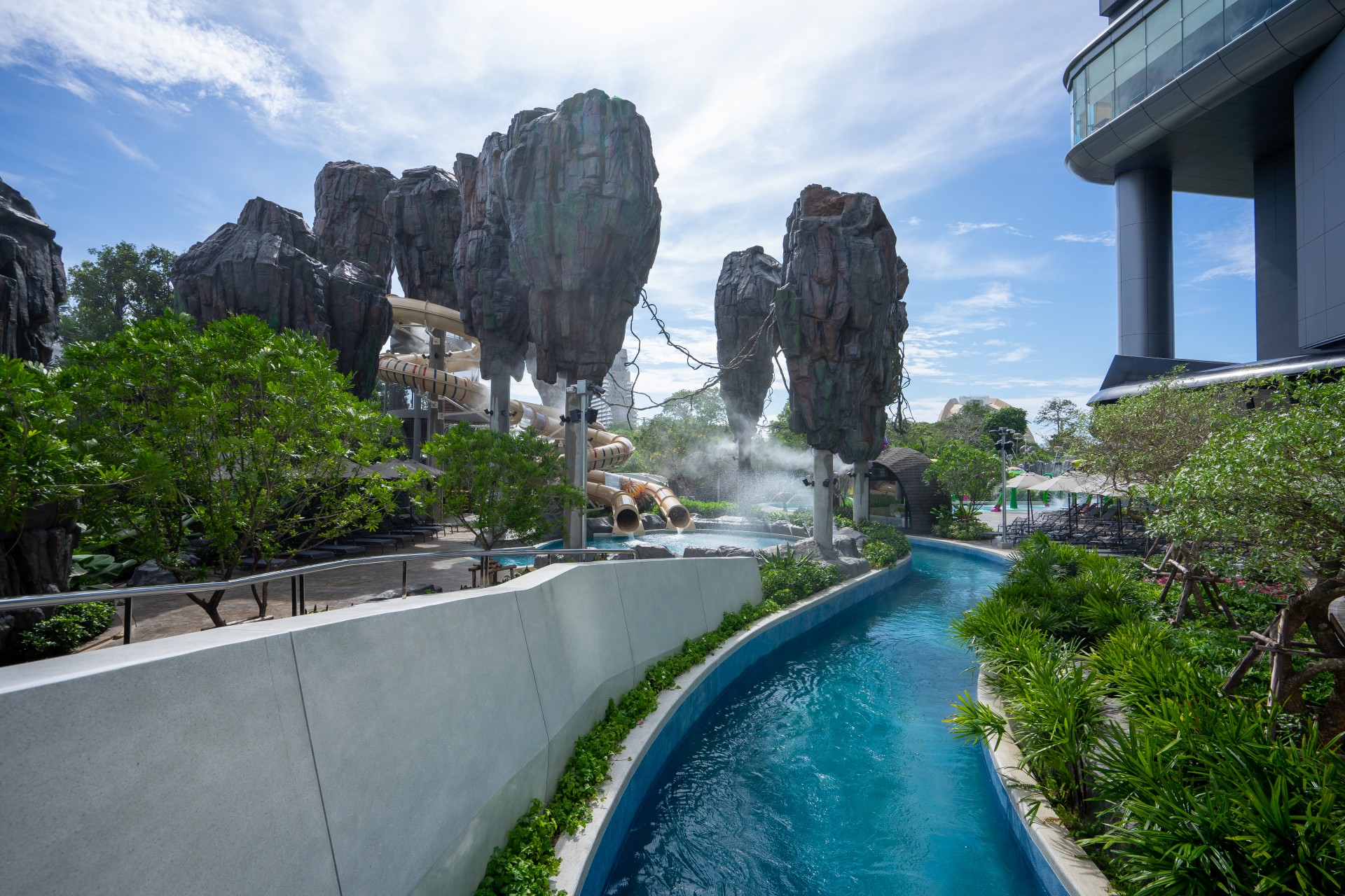 The waterfall cave nestled inside the mountain zone, as well as the jungle jacuzzi, will transport you to a world of peace and relaxation. Running for 330 meters, cruising along on a gorgeous lazy river, or chilling in the swim loops leisurely as the flow takes you.
