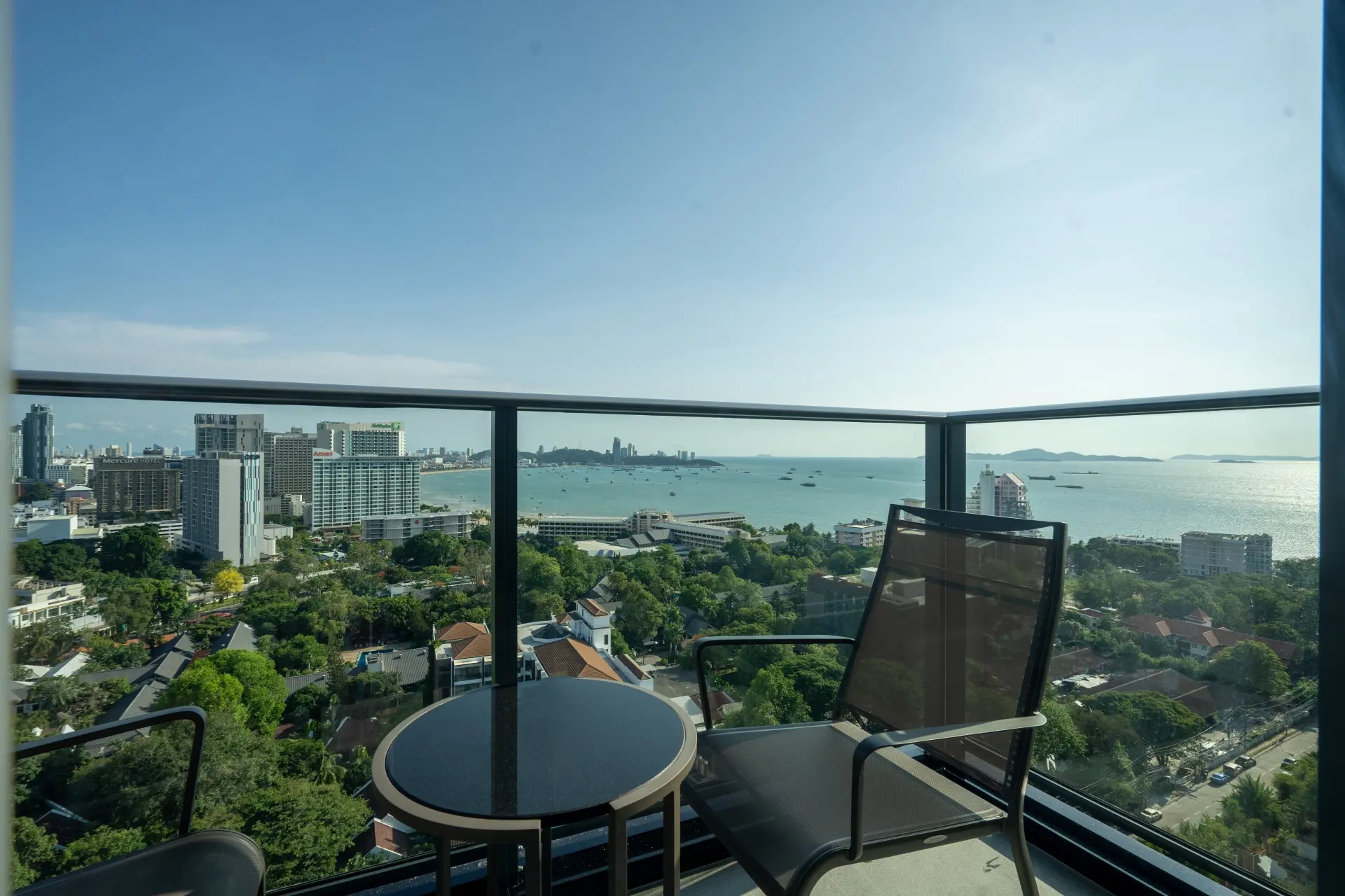This Space Corner room is ideal for a retreat since it has a private corridor, a king or twin bed choice, 45 square meters to unpack and relax, and space for up to two people and one small child. Relax on a comfy sofa and enjoy the views via the floor-to-ceiling door, or enjoy the Pattaya seaside air from your own balcony. Shower in a standing rainfall shower or bathe in a bathtub. A minibar with drinks, coffee, and tea is provided.