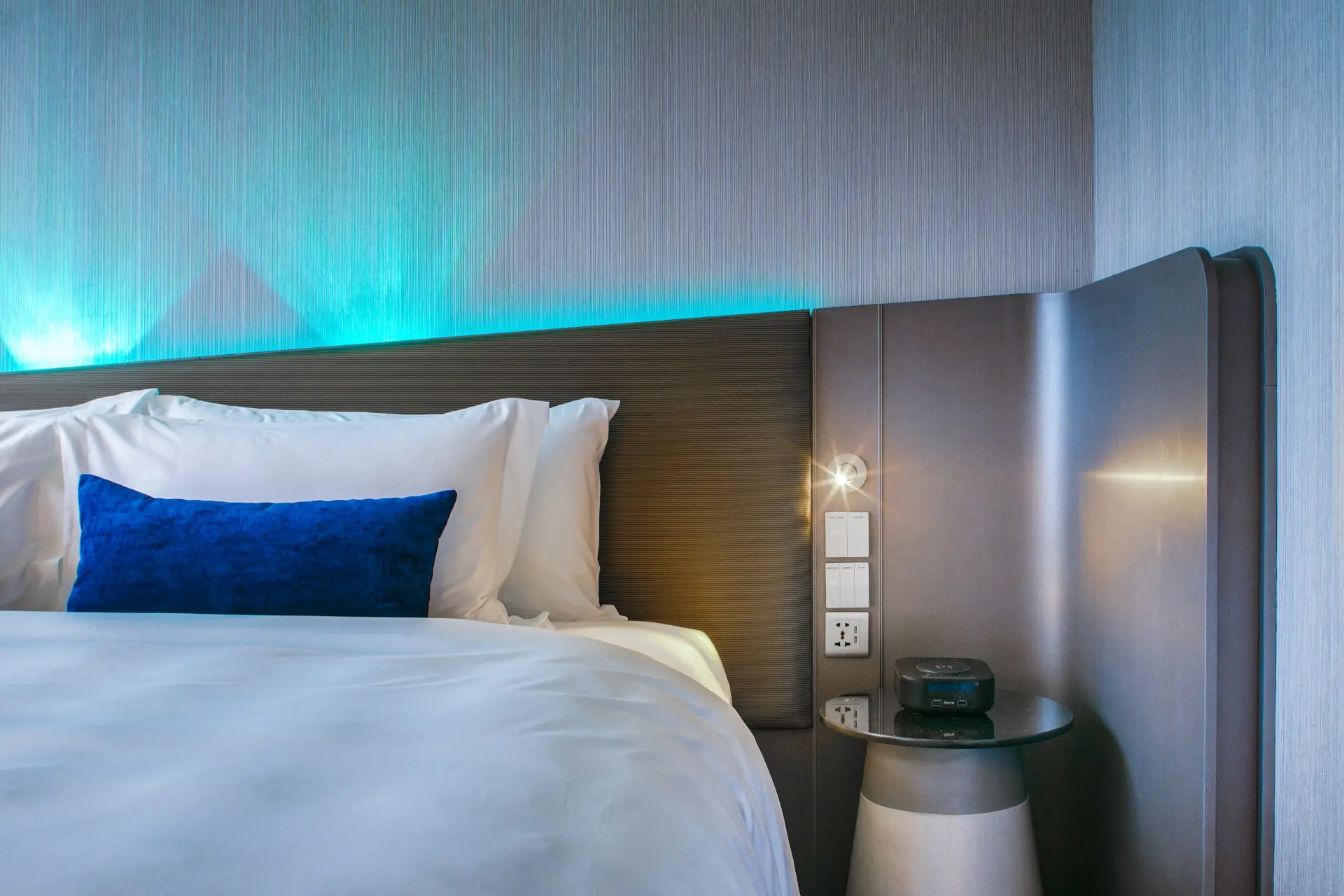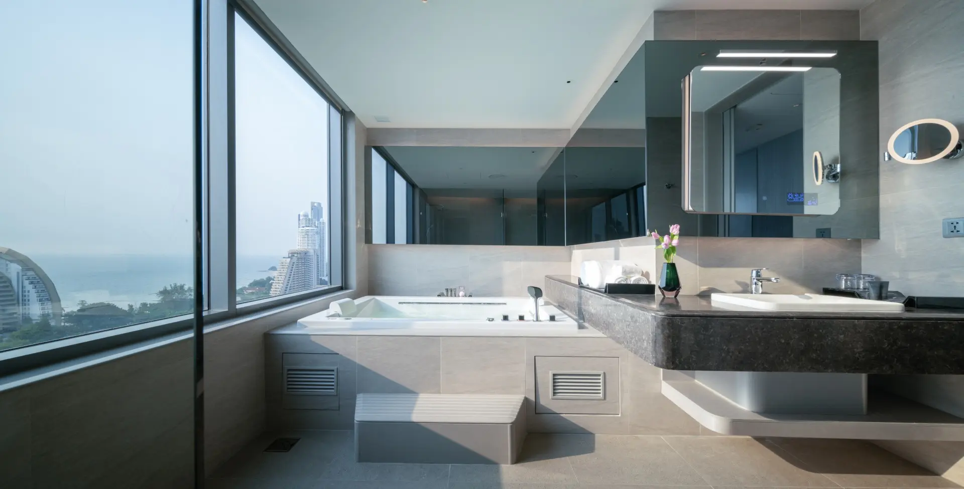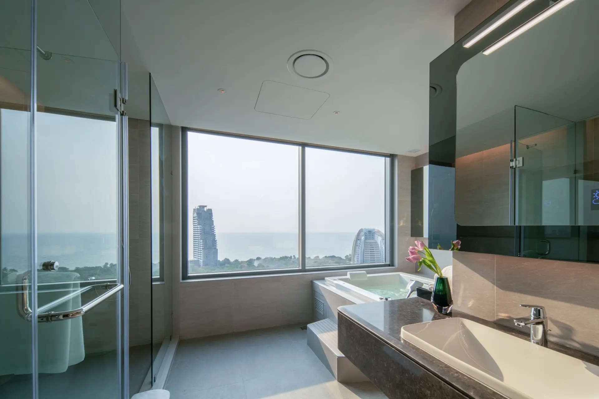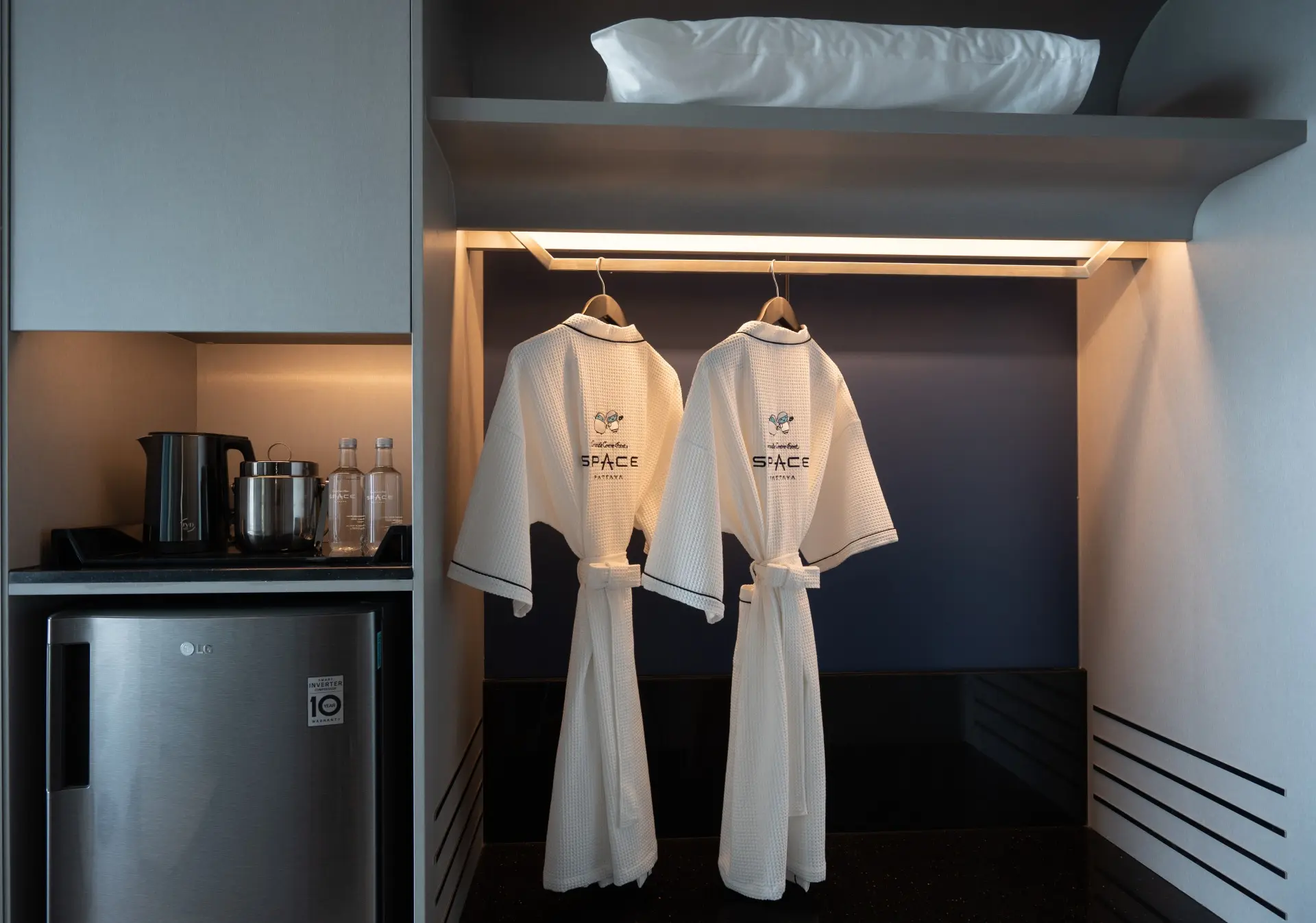 พื้นที่นั่งเล่นที่แยกจากห้องอื่นมีทีวีหน้าจอ 65 นิ้ว ลำโพงบลูทูธของ Harman Kardon โซฟา โต๊ะรับประทานอาหารสำหรับสี่คน ตู้เย็น เครื่องชงกาแฟแบบแคปซูล และตู้ไมโครเวฟ ทำให้สเปซสวีทคอนเน็กซ์เหมาะสำหรับการเข้าพักแบบครอบครัว ห้องนอนทั้งสองห้องมีแสงเหนือ ระเบียงที่มองเห็นวิวทะเล ตู้เสื้อผ้า และห้องน้ำสองห้อง โดยห้องน้ำของห้องนอนหลักมีอ่างจากุซซี่ในตัวพร้อมห้องอาบน้ำฝักบัวแบบเรนชาวเวอร์ และห้องนอนเชื่อมมีห้องน้ำขนาดกว้างขวาง